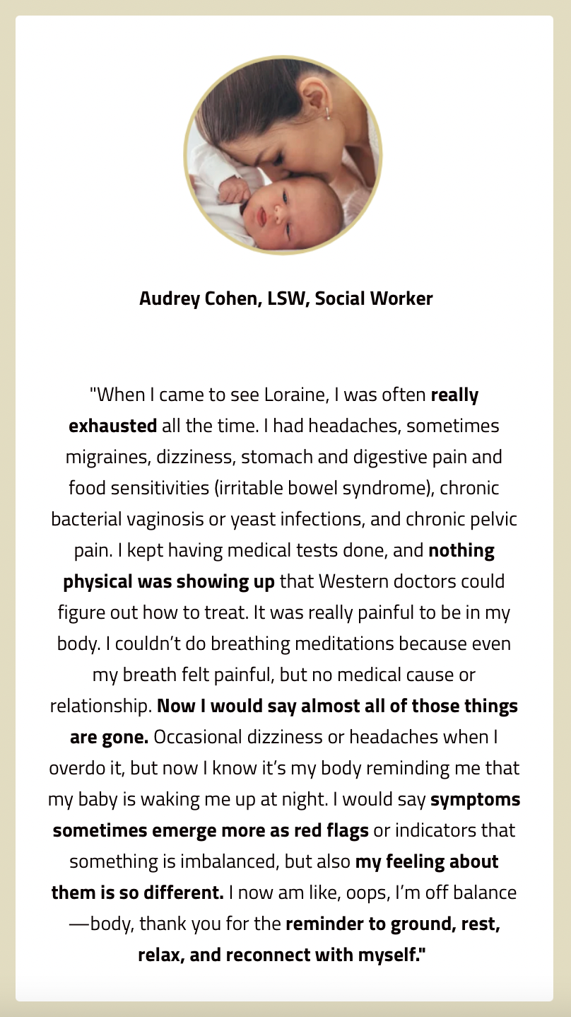 "Loraine’s soul authority framework has allowed me to find the courage to identify with my true feelings and personhood by beginning with habits that I didn’t realize I used to make myself palatable to those around me. Loraine helped me identify small habits that I used to hide myself, such as the way that I used “But I don’t know” as filler and ‘soft landing’ for my opinions and feelings.